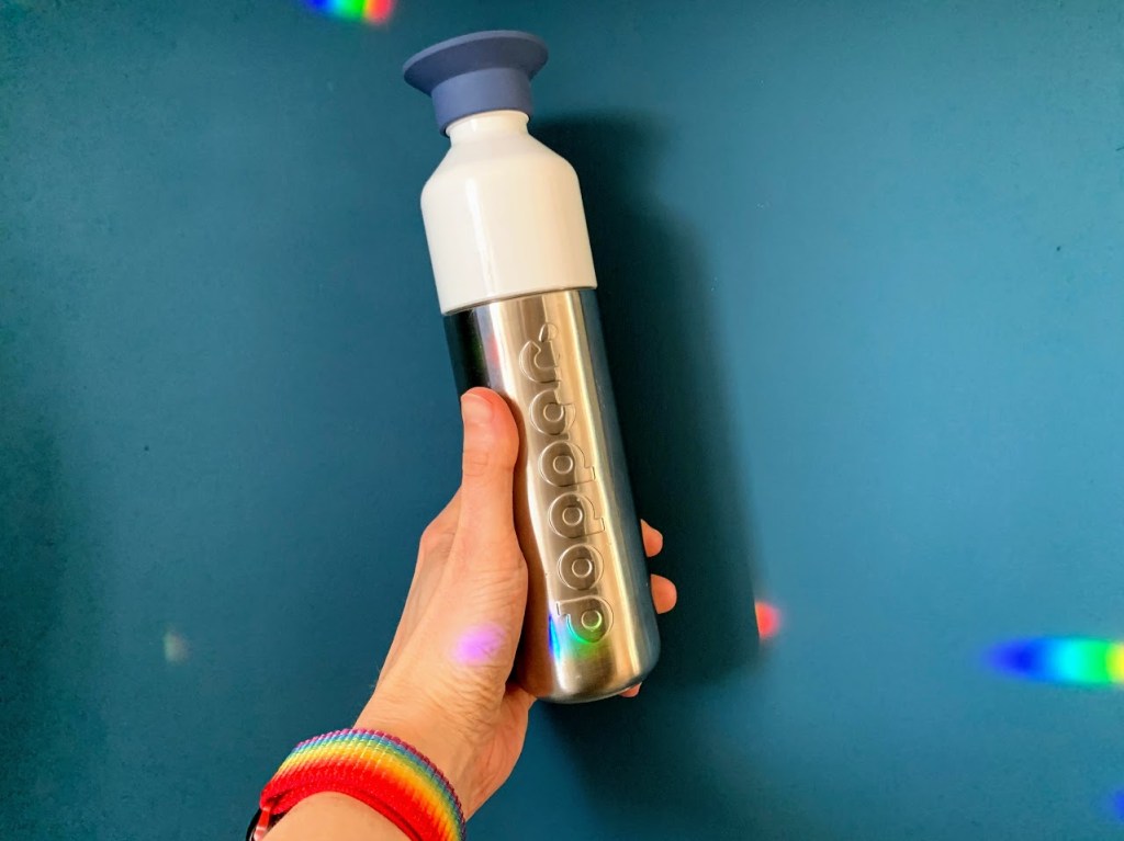 Ik begin mijn dag met een ontbijt smoothie. In het is bananen, soja melk, haver, Chia zaden, pindakaas en veganistisch chocolade munt eiwitpoeder. Het is een smakelijke ontbijt en ik kan het bij mijn bureau eten. Ik maak het in mijn Nutribullet en serveer het in mijn Dopper bottle.
