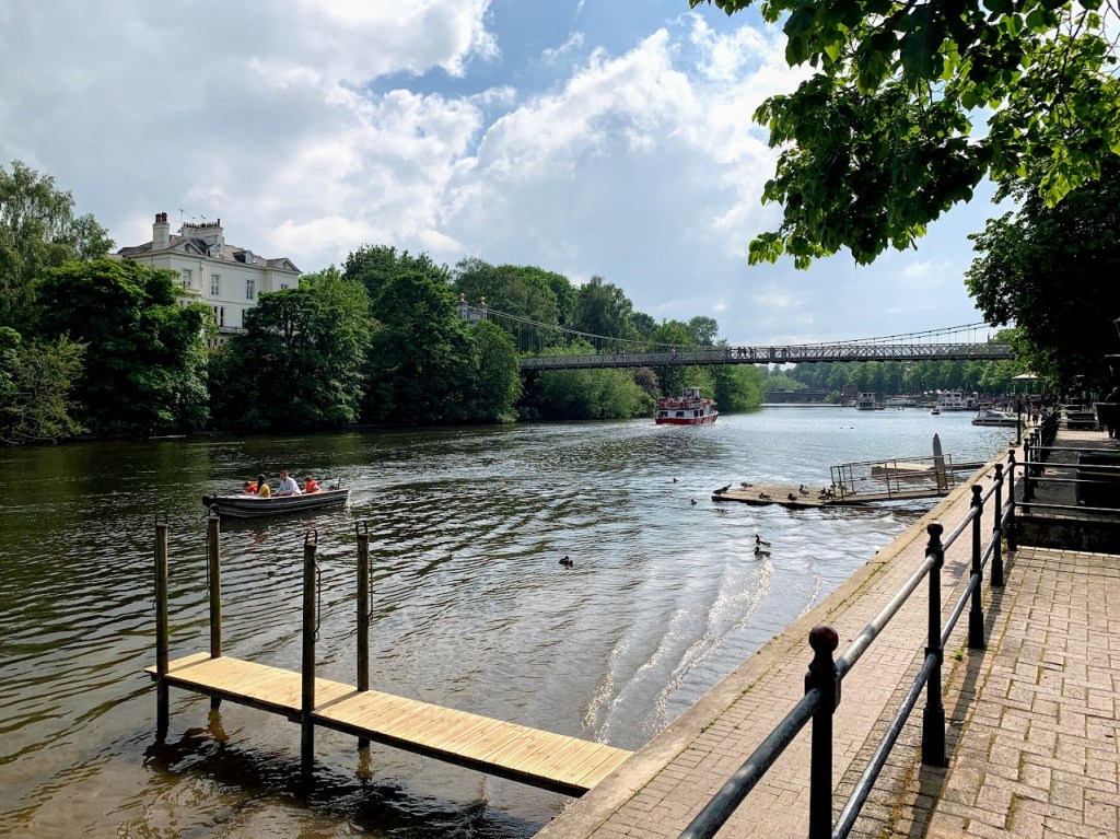 We gingen naar Chester, anderer stad niet ver van mijn jeugd doorp. Het is een ouder stad van Romeinse tijden, met een lange raam aan de buitenkant. Er is ook een rivier, maar het is niet de Mersey. Het is de rivier Dee.
