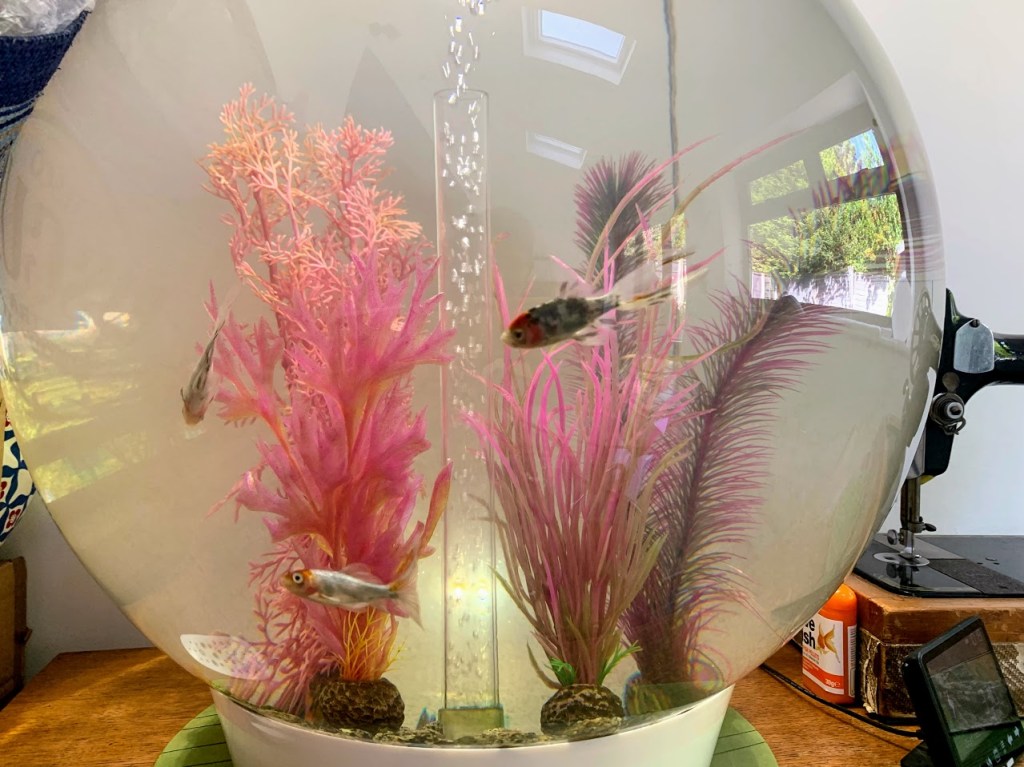 We koos ‘Shubunkin’ vissen want zijn ze mooi! Drie is ook meer dan genoeg voor onze zestig liter aqarium.