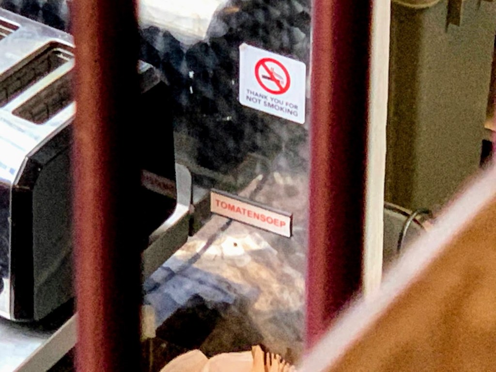 Het was een beetje grappig toen zag ik een kleine teken zeggen “tomatensoep”! (er was geen tomatensoep, en denk ik geen Nederlandse mensen in de cafe!)