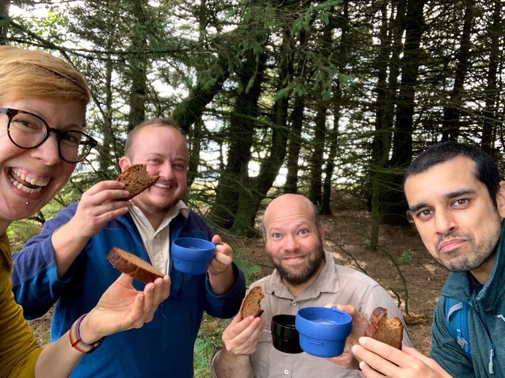 Nee wandeling met mij is voltooid zonder thee en taart. Ik bracht bananenbrood en thee in een fles. Het was leuk om even te stoppen. Ik had heel honger en dorst.