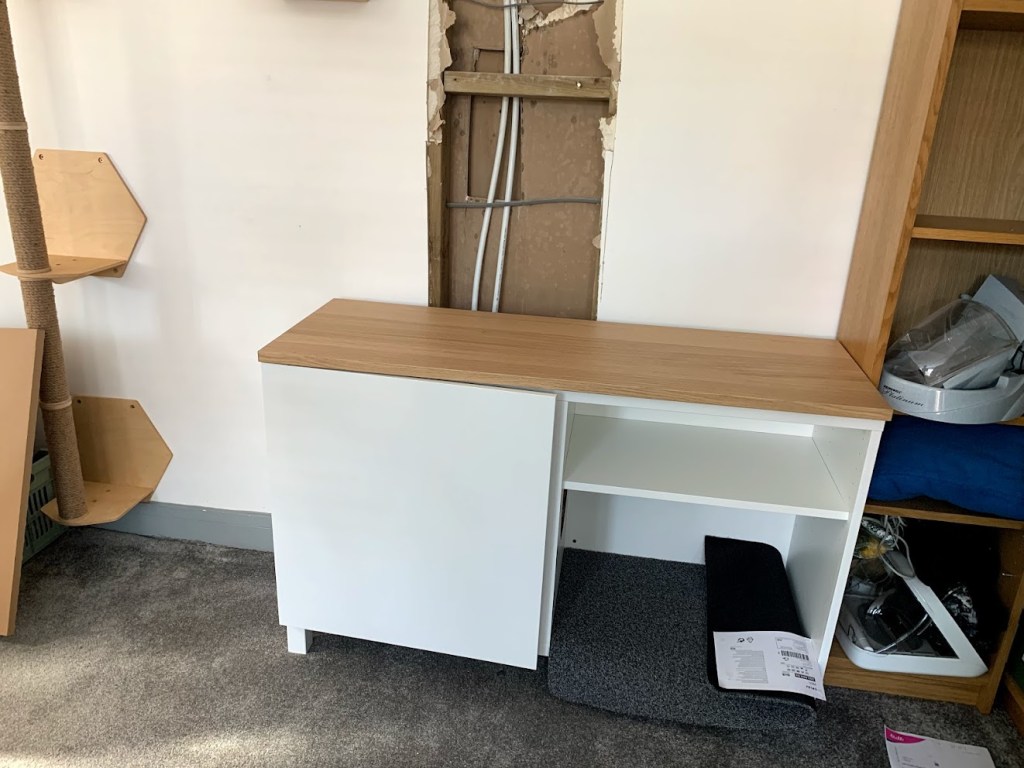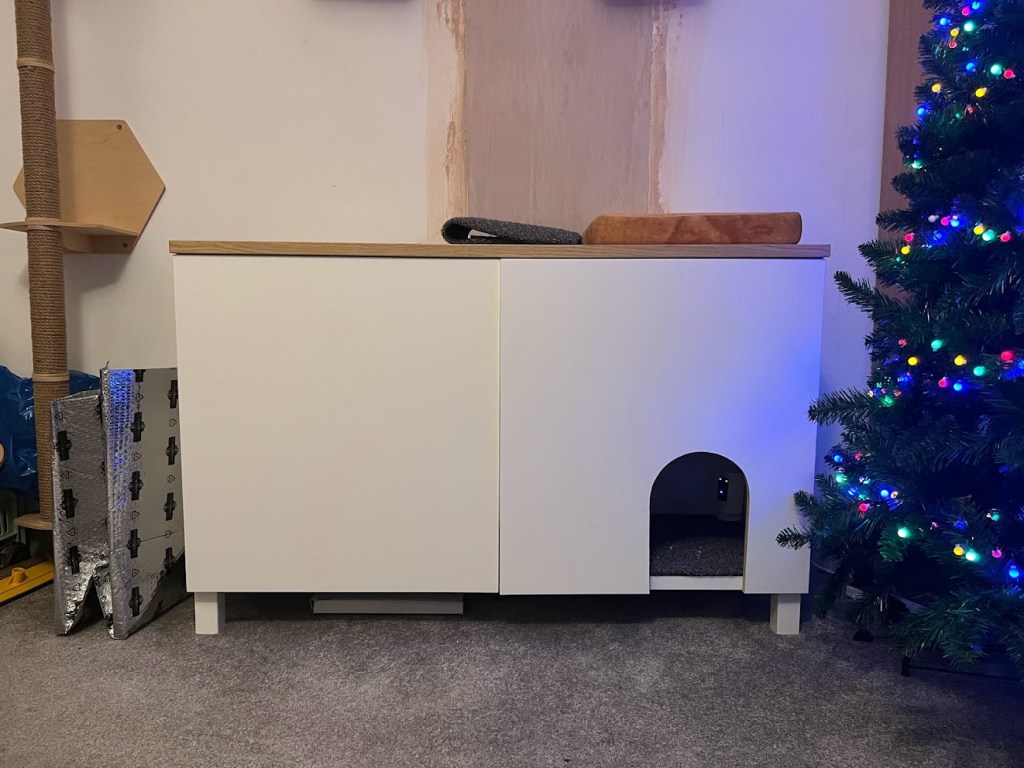 Het was een normaal kast maar, met een beetje Sarah magie, het werd een katten WC kabinet!