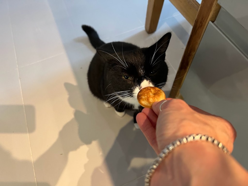 Frodo had veel interessant in mijn poffertjes dus ik heb hem er een laten zien. Hij dacht het niet lekker. Goed, als er waren meer voor mij!