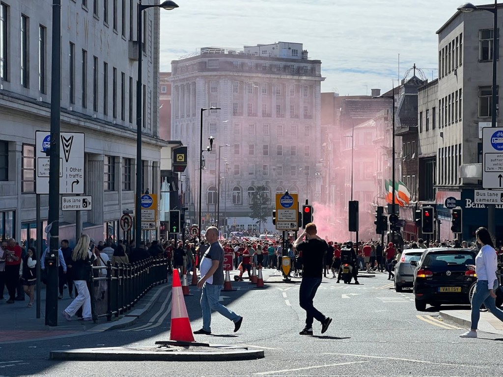 Mijn schrijfwerk gaat over reizen in Liverpool en Manchester, dus we gingen naar Liverpool. Het was an interessante dag want Liverpool voetball was in een finale. Alle fans waren aan heet drinken. Het was luid en levendig!