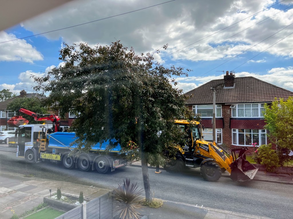 In onze buurt krijgen we nieuwe stoepen. We heb het nodig want zij zijn heel ongelijkamatig. Het is goed zo, want we kunnen een gevallen stoeprand voor onze huis krijgen voor een goedkoop prijs! (meer dan £800 minder dan meestal!!)