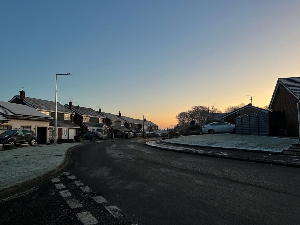 Het was nog glad maar de lucht was mooi met de zonsopkomst.