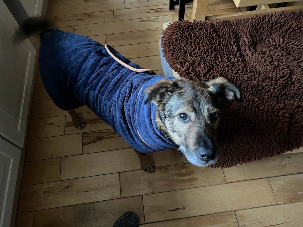 Het was een goede week met de honden. Het weer was goed, maar een octend met een beetje regen. Op het regenactige dag we drogen de honden met honden kamerjassen. Zij waren blijer dan zij lijked op!