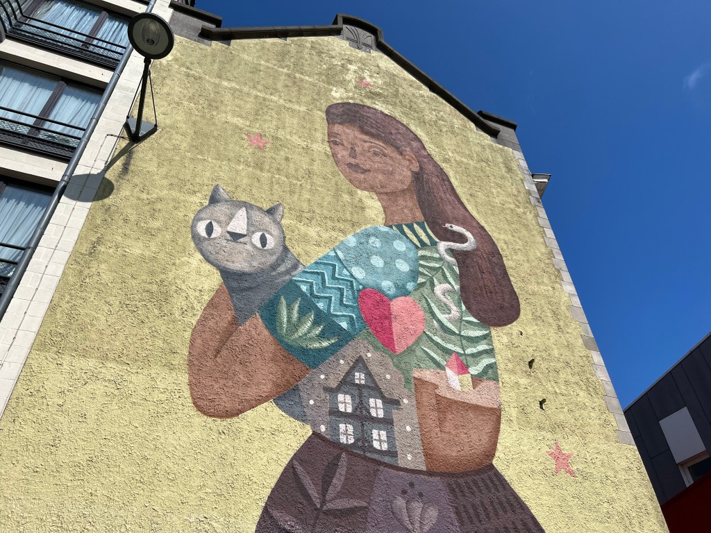 Mensen kennen Brussel voor straatkunst. Het staat op veel gebouwen en we hebben eerder een rondleiding door de stad gelopen. vandaag vond ik een heel schattig kunstwerk van een kat!