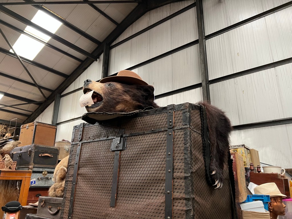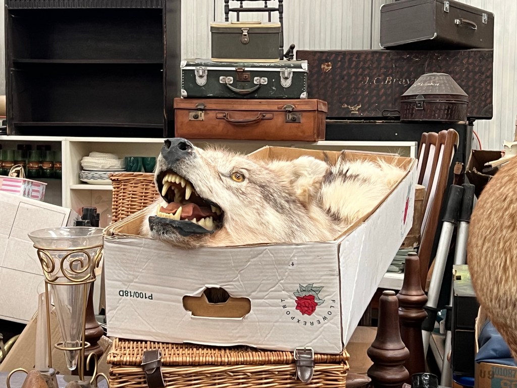 Taxidermie is een rare ding. Het is even interessant als goor. Er was veel in de antiekwinkel vandaag. Van een beer tot een wolf en veel vossen en eekhoorns. Ik vond de beer en wolf een beetje vreselijk. Ze waren echter goed gedaan.