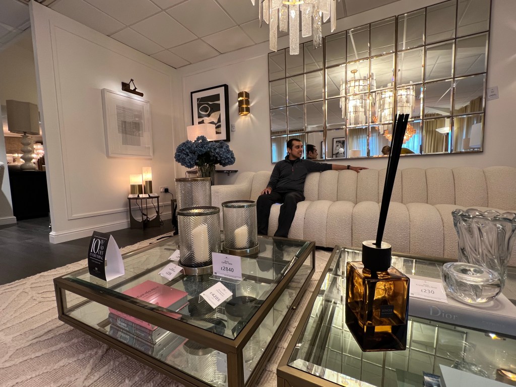 Het was weer een natte dag in Manchester, dus we dachten dat we naar een antiekwinkel in de buurt van ons oude huis gingen. Er is ook een chique meubelwinkel.