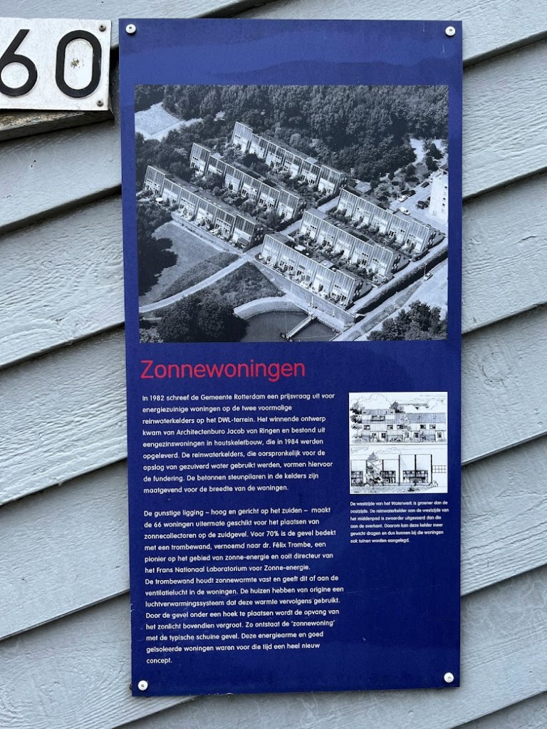 Het was voor mij interessant omdat ik het in mei vond toen ik in Rotterdam was. Het staat in een interessante buurt van Rotterdam heet Zonnewongingen. Ik heb een foto van het informatie om je te lezen.