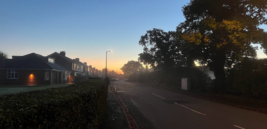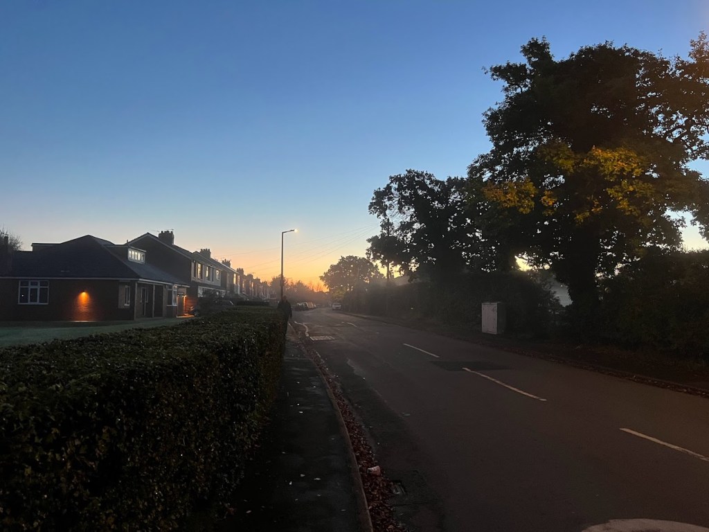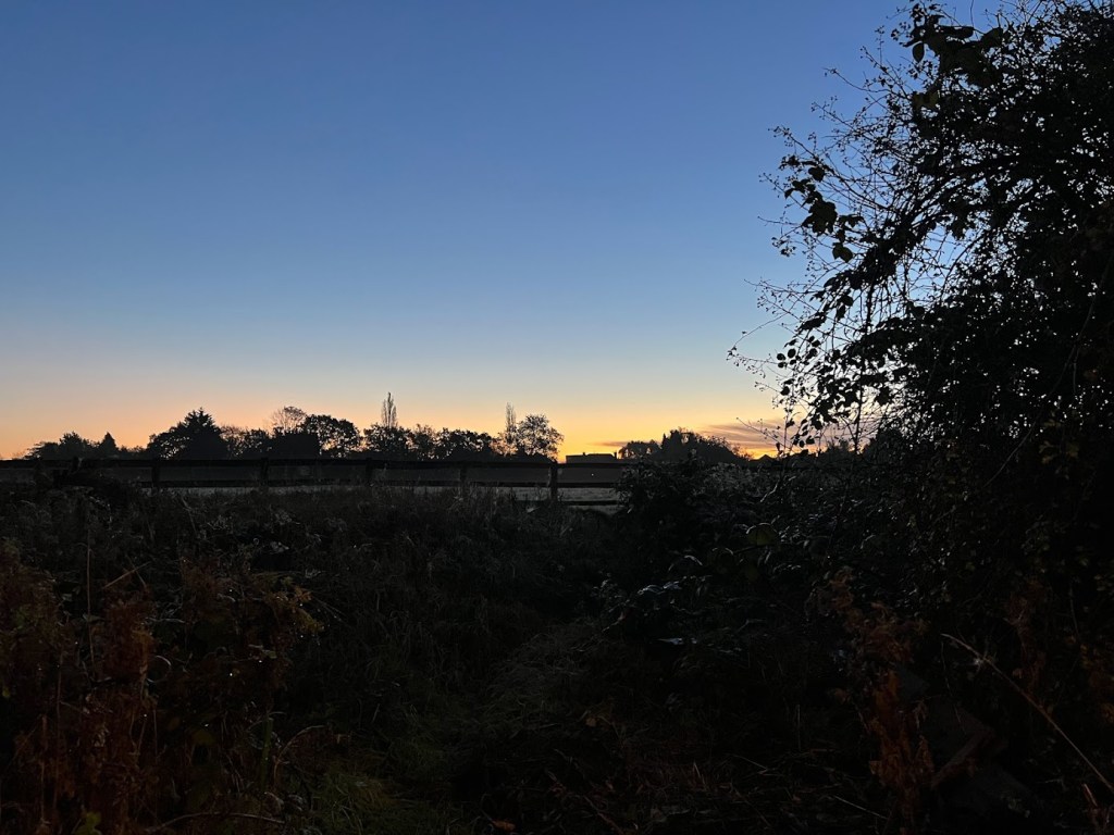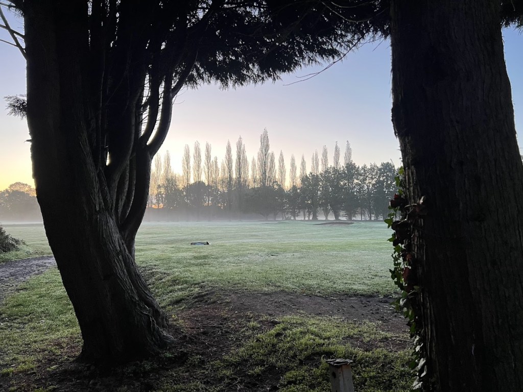 Vandaag was de mooiste herfstochtend. Er was lage mist en een gloeiende rode zonsopgang. Het was koud maar niet te koud en ik had een lekkere koffie in mijn handen.