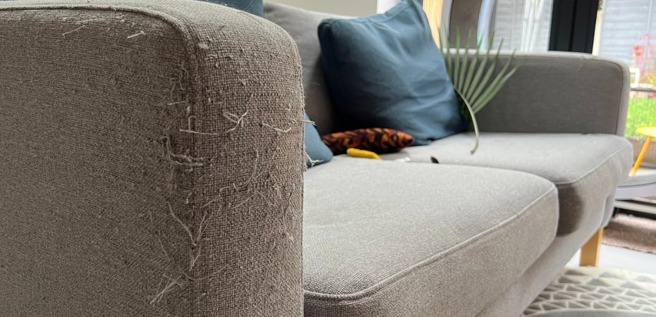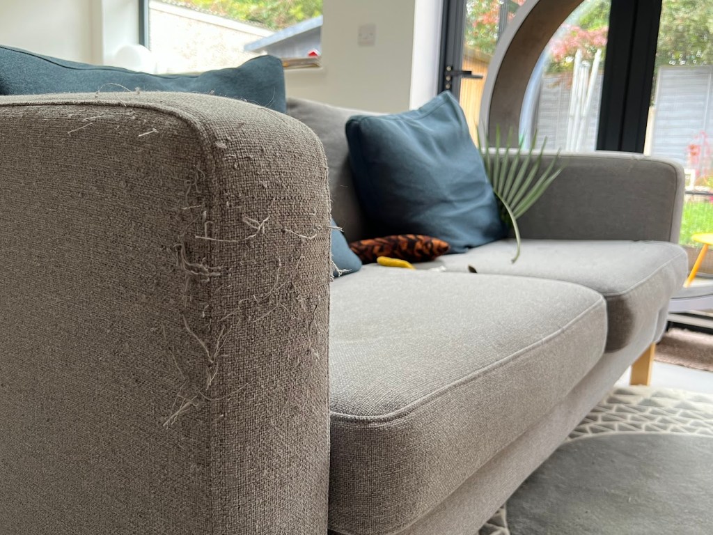 Eerder kocht ik een nieuwe bankhoes voor ons keukenbankje op internet (eBay) was het goedkoop, maar toen het arriveerde was het een slecht materiaal voor een huis met katten. Het voelde lekker aan, dus de katten wilden krabben.