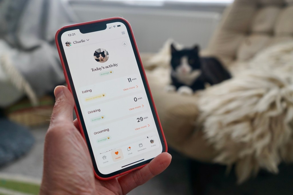 Er is een app bij de tracker om te zien hoeveel activiteit je kat heeft gedaan (ik heb er meer, want ik test hem voor mijn werk).