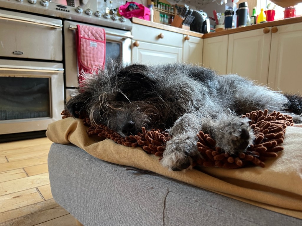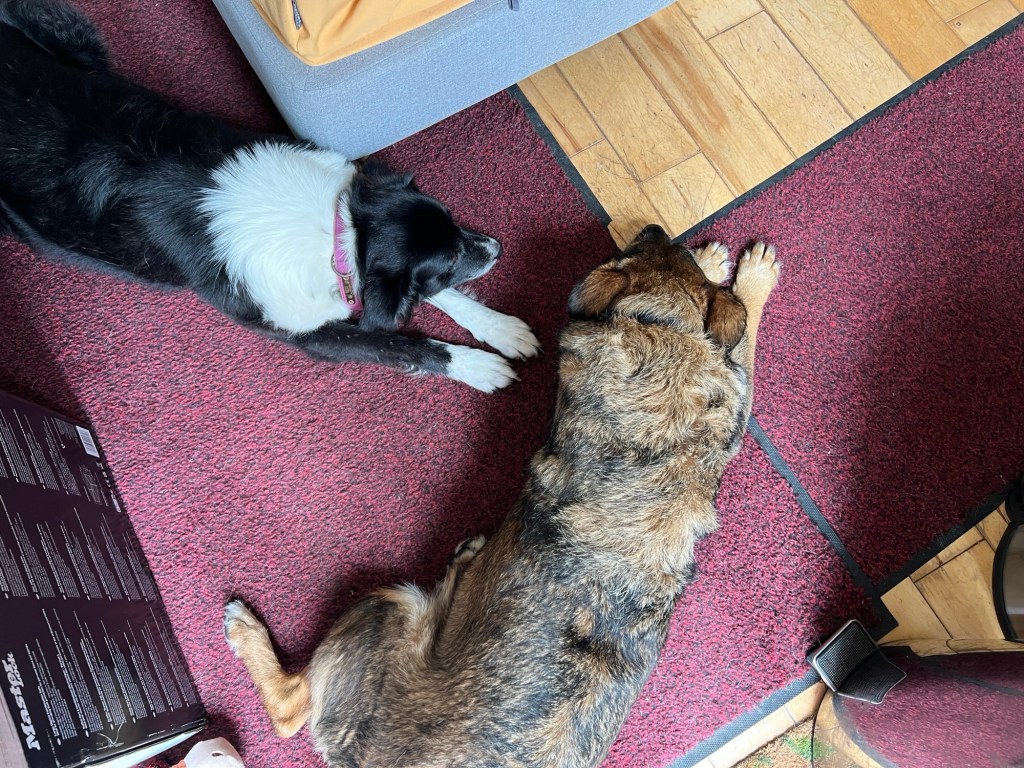 Terug naar huis had ik een kopje thee en de honden een snackje en een slaap. Het was een grappige dag.