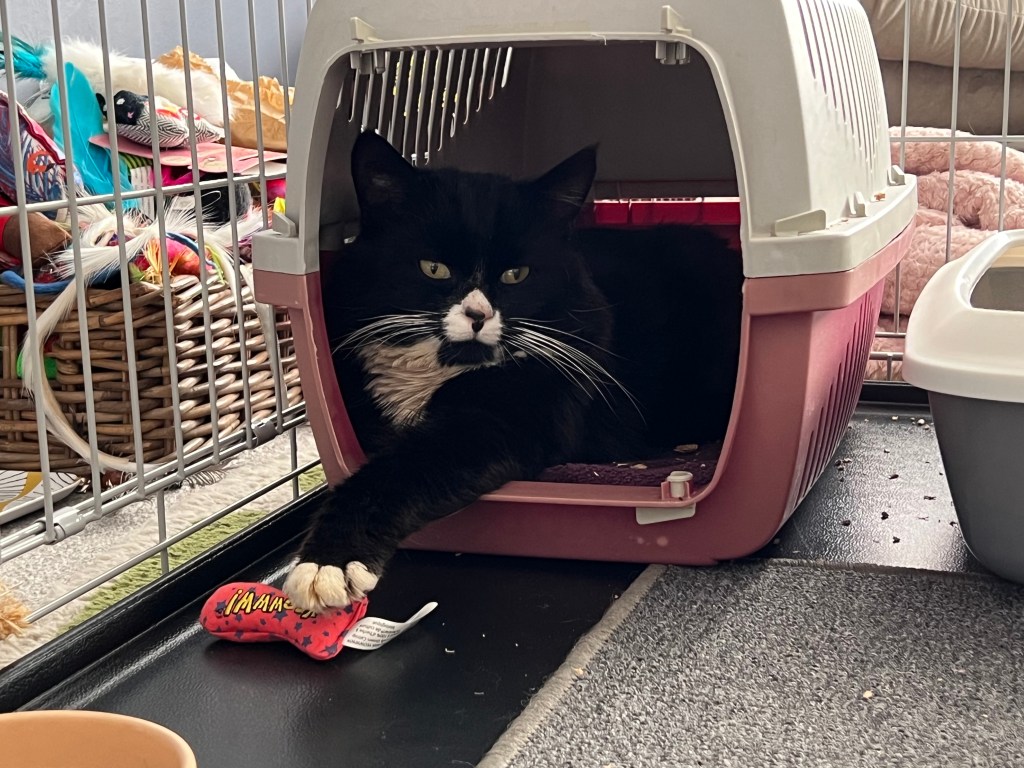 Hij sliep de eerste nacht heerlijk. Hij was verdrietig, moe en stonk. Ik heb hem laten castreren en bloedonderzoek laten doen, en hij bleek gezond te zijn (voor zover dat mogelijk is in zo’n situatie). Na een paar weken herstel maakte hij kennis met mijn andere katten en door geleidelijke kennismaking raakte hij gewend. Hij is nu de beste vriend van Pipi, wat haar erg blij maakt!